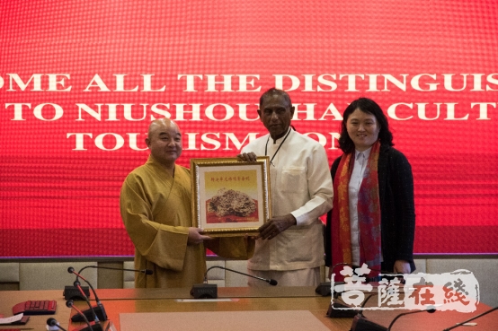 南京市佛教协会驻会副会长马荣恩向佩雷拉部长赠送纪念品