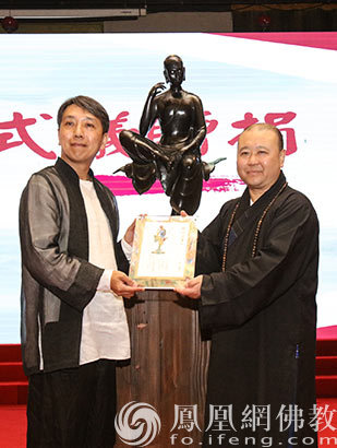 林祐民先生向上海玉佛禅寺捐赠其精心创作的佛教造像一尊(图片来源:凤凰网佛教 摄影:上海玉佛禅寺)