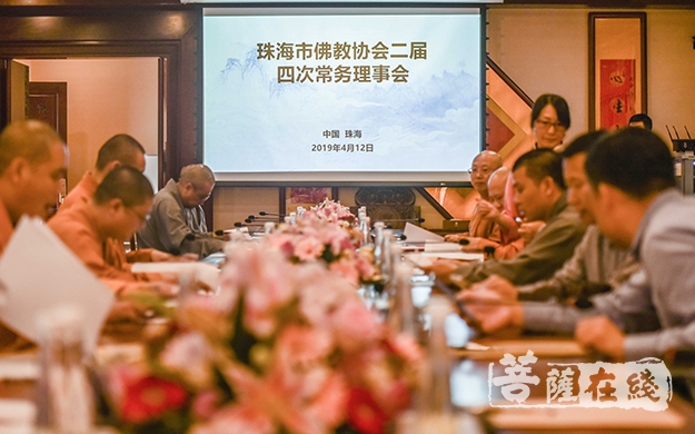菩萨在线广东讯 4月12日,珠海市佛教协会召开第二届常务理事会第四次会议。中国佛教协会副会长、广东省佛教协会会长、珠海市佛教协会会长、普陀寺方丈明生大和尚,珠海市佛教协会副会长兼秘书长、珠海金台寺住持弘如法师,珠海市佛教协会副会长、普陀寺首座果慧法师,珠海市佛教协会副秘书长、普陀寺首座代监院悟和法师,金台寺监院惟德法师,珠海市佛教协会第二届常务理事会全体常务等参加会议。