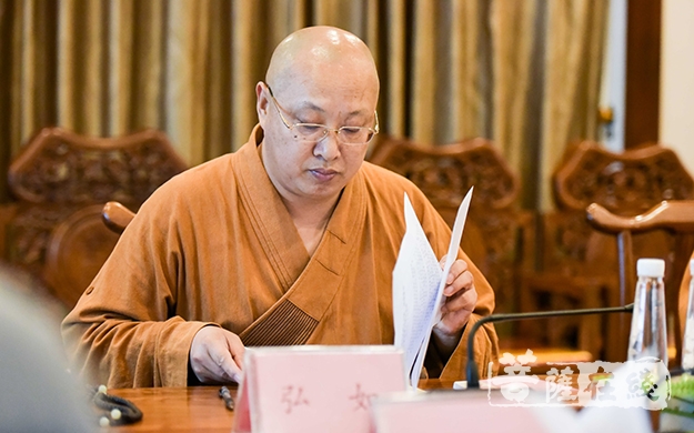 弘如法师宣读关于调整珠海市佛教协会第二届理事会常务理事的情况