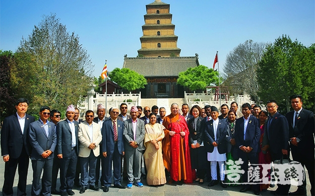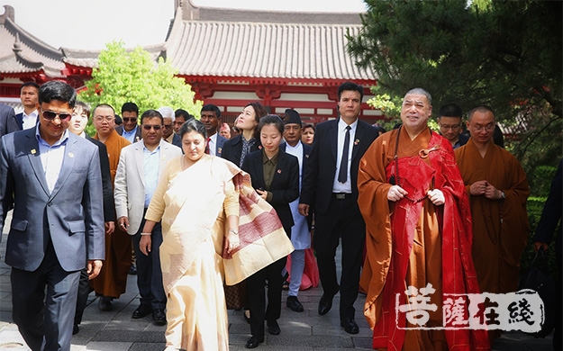 菩萨在线陕西讯 4月25日,尼泊尔联邦民主共和国总统、尼泊尔共产党副主席比迪娅·德维·班达里一行访问大慈恩寺,中国佛教协会副会长、陕西省佛教协会会长、大慈恩寺方丈增勤大和尚予以热情接待。