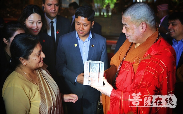 增勤大和尚热情接待尼泊尔联邦民主共和国总统、尼泊尔共产党副主席比迪娅·德维·班达里