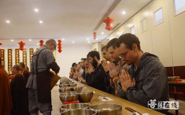 寿圣寺方丈界隆法师带领大家在禅堂和常住法师一起跑香、坐香。开静后,界隆法师开示赵州禅师“喫茶去”公案,介绍顾渚山紫笋茶的由来及陆羽《茶经》的著述情况,讲述中国禅茶文化“正清和雅”的精神理念以及“感恩包容分享结缘”的社会功能,并请大家品尝紫笋禅茶、一起过堂用斋。
