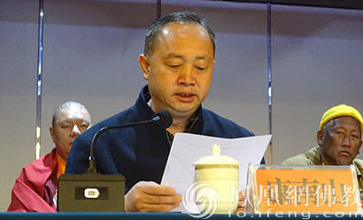 迪庆州民宗委主任马国忠讲话(图片来源:凤凰网佛教 摄影:明捐法师)