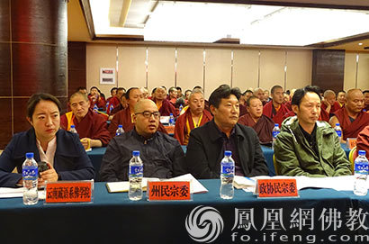 迪庆州民宗委主任马国忠在讲话中说:迪庆是云南省唯一的以藏民族为主,多民族聚居,多宗教共存,多文化交融的藏族自治州。全州共有依法登记并恢复开放的藏传佛教寺院23座,世袭活佛50位,佛教教职人员2400多名,共有信众约12.6万人,约占全州总人数的38%,佛教对迪庆州经济社会发展稳定大局和广大群众的生产生活都具有广泛而深远的意义。近年来迪庆州宗教工作走出了一条具有鲜明的“迪庆特色”的路子,特别是在有效管理藏传佛教寺院等方面走在了全国藏区前列,在全国率先实行寺院派驻管理机构模式,在全国率先颁布实施了《迪庆藏族自治州藏传佛教寺院管理条例》,成为了全国藏区宗教工作的模范和标杆。当前,佛教在化世导俗、弘扬正气的同时,也受到了世俗社会、全新观念和信息时代的严峻挑战和冲击。希望在迪庆州佛教协会的带领下,迪庆州佛教界坚持爱国爱教,树立纯正教风,积极引导信众,完成历史使命。