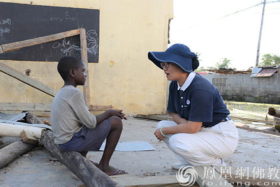 慈济志工关心当地受灾民众(图片来源:凤凰网佛教 摄影:慈济基金会)