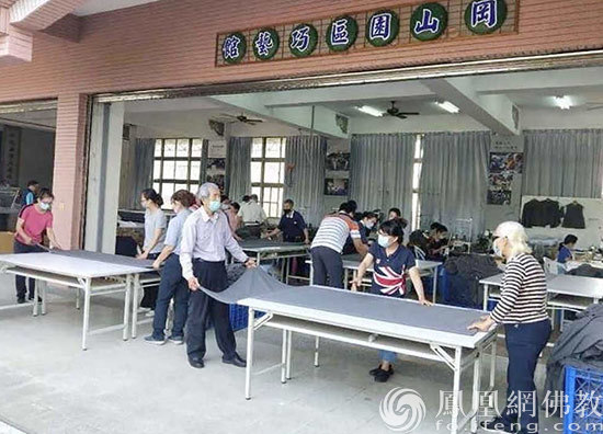 赶制赈灾毛毯(图片来源:凤凰网佛教 摄影:慈济基金会)