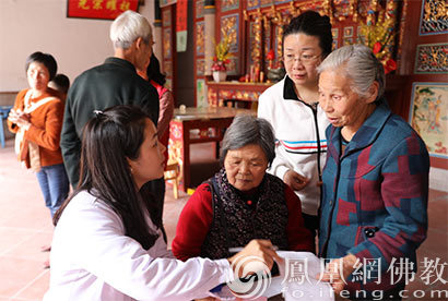 鸿山慈善会工作人员为前来检查的居民服务(图片来源:凤凰网佛教 摄影:厦门鸿山寺)