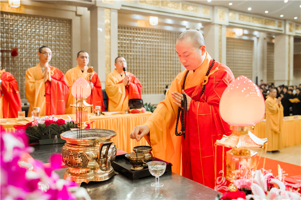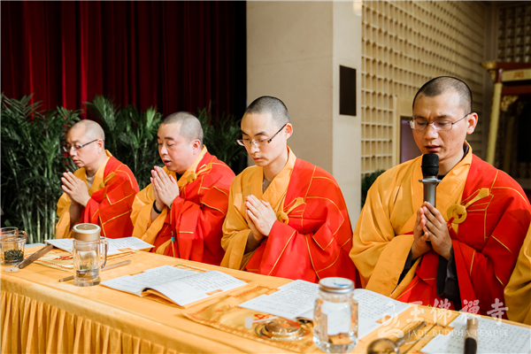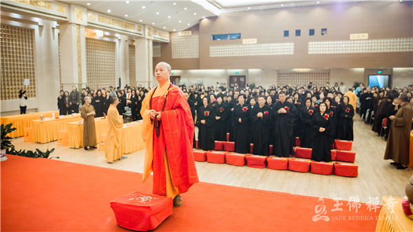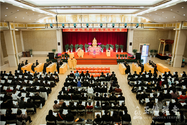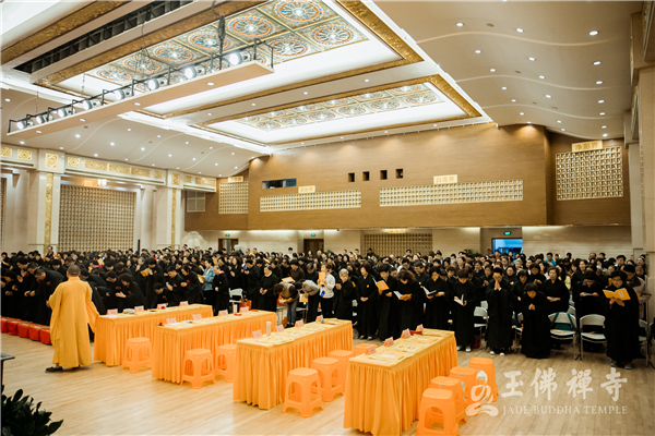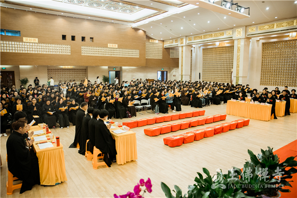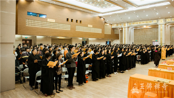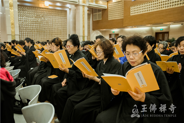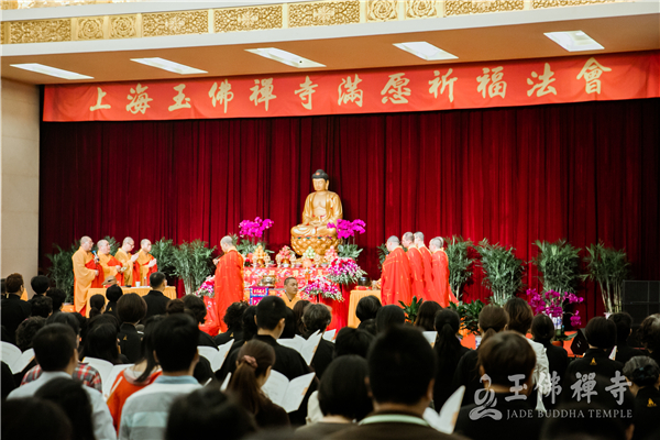 2019年4月20日 农历三月十六 准提菩萨圣诞吉日 上海玉佛禅寺隆举 满愿祈福法会 祈愿众生精勤修行、善愿皆成 上午九时,上海玉佛禅寺万佛堂内,缁素两序恭敬排班、庄严肃穆,礼请玉佛禅寺维那文渊法师主法。 法鼓振鸣,香云冉冉,文渊法师拈香顶礼。众功德主众如法供养,虔诚敬献曼妙香华、蔬果珍馐,植福修慧,祈愿得蒙准提菩萨慈力加被、逢凶化吉、遇难呈祥。 随后文渊法师用大悲甘露遍洒十方,结界坛场,洁净大众身心三业。洒净讫,法师领众熏修,共诵经典,以此至诚念佛之心香供养诸佛菩萨。 诸善信跟随法师,净心唱诵《大悲咒》。《大悲咒》是观音菩萨为利乐一切众生而宣说,利益功德广大,消障除难、得善遂愿,是佛弟子最常诵持的经咒之一。 “念念相续,无有间断。身语意业,无有疲厌......”万佛堂内朗朗回响着普贤菩萨的大愿,法语声声如洗心甘露。 《普贤菩萨行愿品》为经中之王《华严经》的精华之一,讲述了普贤菩萨以十种方式圆满大愿的修行法门,因此诵持《普贤行愿品》向来被视为积累菩提资粮、净除障碍、修得福报的绝佳法门,在诵念每一个大愿时,若能打开身心融入其中,观想普贤菩萨愿力的广大,即能得到普贤菩萨的加持,帮助自身速得成就满愿。 “稽首皈依苏悉帝,头面顶礼七俱胝。我今称赞大准提,唯愿慈悲垂加护。”于此准提菩萨圣诞吉日,大众共持《准提咒》,愿与准提菩萨愿力相应,加持己身,得成善愿。 至此,己亥满愿祈福法会功德圆满,两序大众以此供养、诵经之功德,回向法界有情,祈愿—— 国运昌隆 风调雨顺 人民安康 众心慈爱 善根深植 趣向菩提 准提菩萨赞 我闻诸佛出生处,本从微妙秘密印 密印即是诸佛心,散入众生妄想梦 梦想若破诸佛现,犹如寒空见日光 若破众生烦恼云,现仗如来密咒力 持咒即持诸佛心,我心原是秘密咒 三缘会合本不二,是故一念悉具足 但能日用常现前,如子得母不舍离 佛心既入持咒心,不用求佛自解脱 ——憨山大师