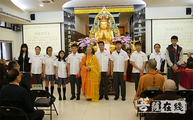 贤度法师与获奖学生合影