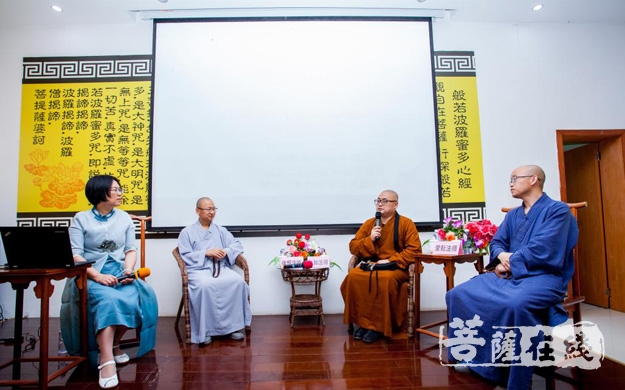 此次论坛嘉宾有:中国佛学院讲师体恒法师、鉴真佛学院教务长兼院长助理仁如法师、无锡祥符寺《觅菩提》副主编常耘法师。