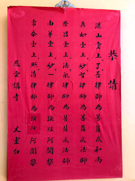 礼请得戒和尚了善律师,羯摩阿闍黎妙智律师,教授阿闍黎法航律师