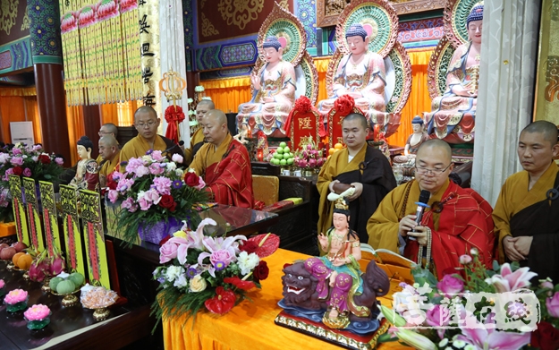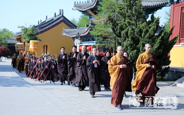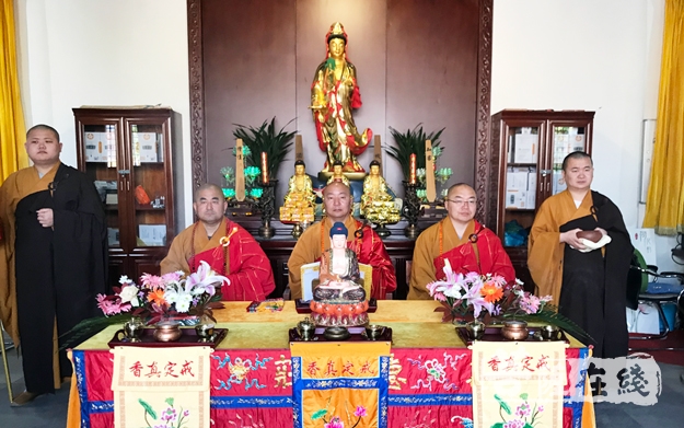 4月30日,举行了庄严的洒净仪式,净坛法会恭请胶州市佛教协会会长、慈云寺方丈了善大和尚,广东省佛教协会办公室主任、广东佛学院教务长、广州光孝寺监院妙一法师,浙江省安吉芝山寺监院照清法师主法。法会现场清净庄严,如法如律。