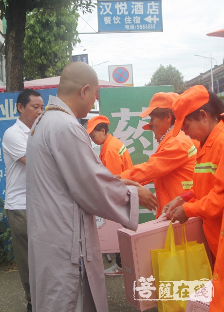 汉中市南郑区佛教协会会长续法法师一行慰问环卫工人