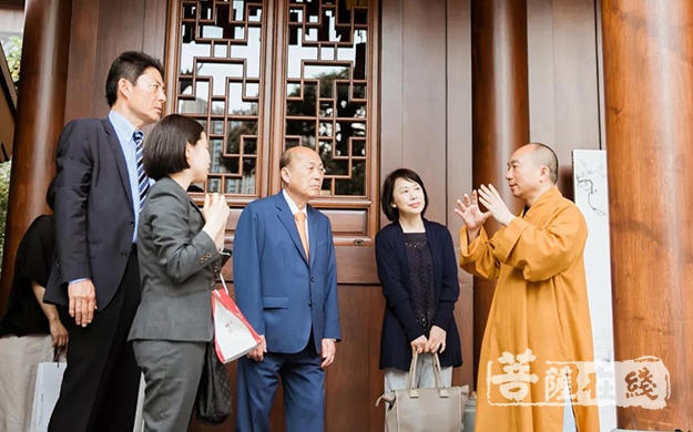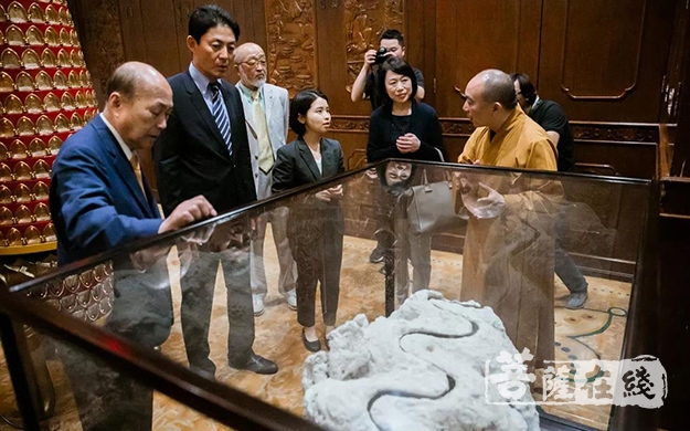池坊专永家元一行,首先参观上海玉佛禅寺的各处殿堂,并瞻仰精美的玉佛、卧佛、如意轮观音等圣像。