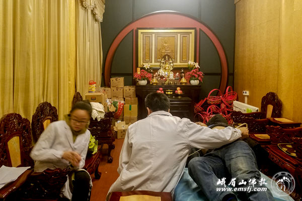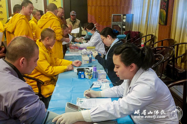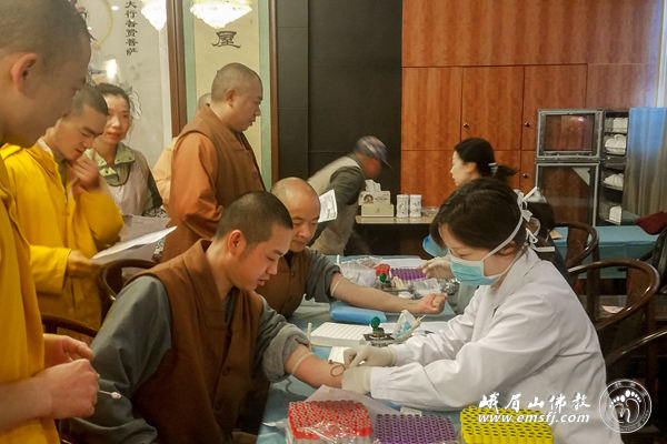 2019年6月2日,武警四川总队372医院医师赴峨眉山金顶华藏寺为全体僧众员工义诊。法师及员工们热情接待义诊医师,对他们关爱大众健康的义举表示由衷的感谢。