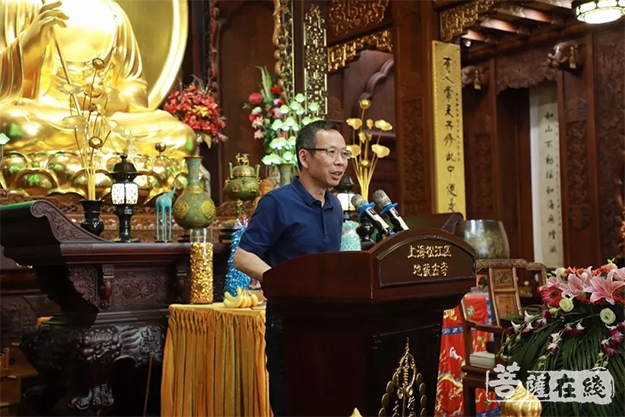 从佛陀传法的慈悲智慧到禅宗流传的深意及松江佛教三十余年弘扬的精神理念三方面,由衷赞叹此展对弘扬传统文化、和谐社会、净化人心的意义。