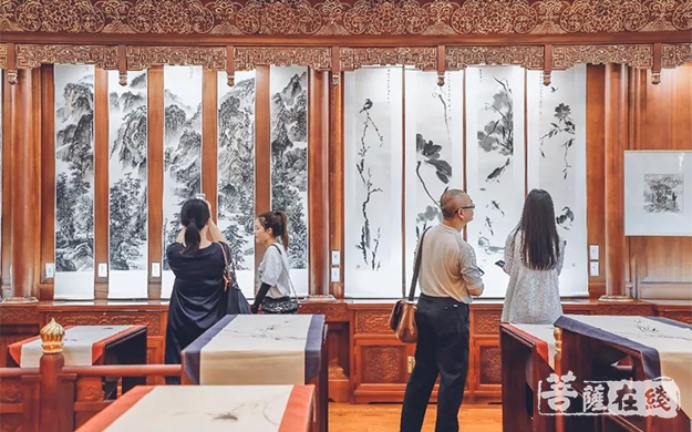 菩萨在线上海讯 会心云间地藏寺,献礼华诞众生愿。在松江区民族宗教事务办公室指导下,渠宜书院、海上印社、上海书画善会联合主办,松江区佛教协会、上海崇恩书画院、行愿文化艺术中心承办的“会心-中国画九人展”于7月28日在云间古刹地藏古寺行愿文化艺术中心开幕。