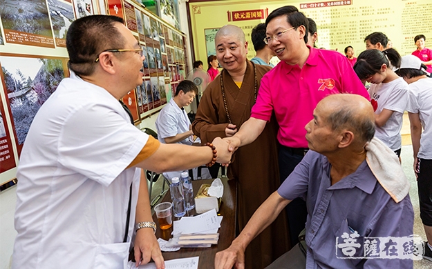 启动仪式后,86名由专家、医护人员、义工组成的工作团队,分别在永泰县岭路乡政府、吉祥温泉小区开展义诊扶贫活动。福建省人大常委会副主任檀云坤、福州市市长尤猛军、厦门南普陀寺慈善会会长则悟大和尚等嘉宾在活动现场详细了解老区群众健康情况,并深入困难家庭入户慰问。