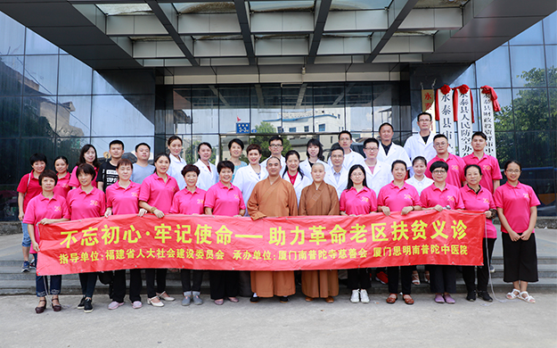 自2019年5月11日起,厦门南普陀寺慈善会、厦门思明南普陀中医院启动对革命老区、中央苏区的扶贫义诊活动,医护专家和工作团队踏上红色热土,慈善会法师入户了解家庭情况和致贫原因。崎岖不平的土路,群众对扶贫义诊的期盼目光,坚定了工作团队学习老区精神,奉献所能,服务老区的决心,也重拾初心,把民众最直接、最关心、最现实的问题作为出发点。通过入户慰问,义诊施药提升老区人民获得感、幸福感,在这片红色热土上奉献自我,点燃激情,在助人中净化心灵。
