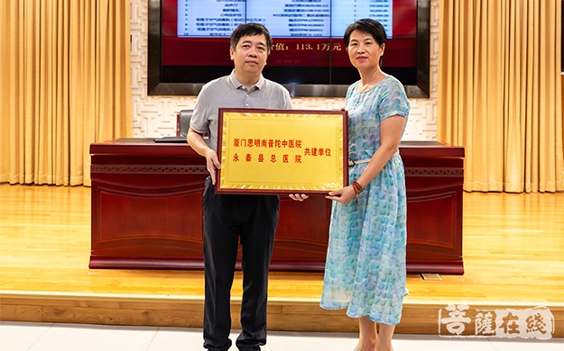 厦门思明南普陀中医院赠牌给永泰县总医院