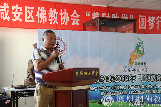 咸安区佛教协会副会长陈良柱发言(图片来源:凤凰网佛教 摄影:湖北咸安佛教协会)