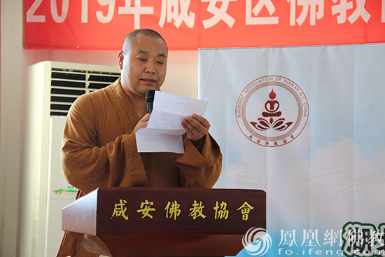 咸安区佛教协会副秘书长宗贤法师发言(图片来源:凤凰网佛教 摄影:湖北咸安佛教协会)