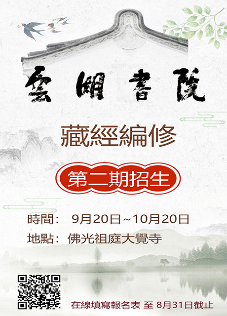 (转载自:佛光祖庭大觉寺,原标题:藏经编修 续佛慧命——云湖书院藏经编修班第二期招生中)