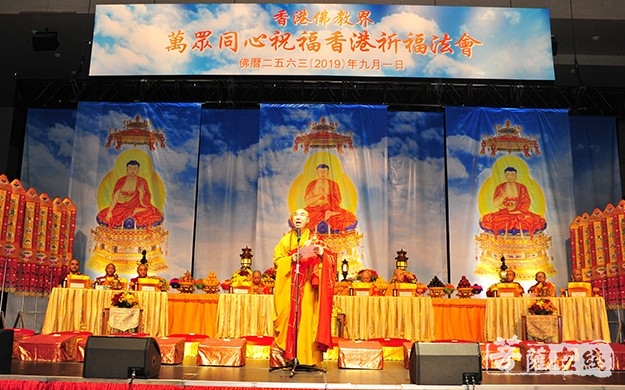 香港佛教联合会会长宽运法师在佛前祈愿,希望市民能有四种心,即和平心、智慧心、善良心和慈爱心。和平心即让一切怨怼及暴力冲击止息,向暴力说不,向破坏港人福祉的行为说不。智慧心即辨是非黑白,面对当前困局,重回和平理性轨道,为人为己,共谋出路。善良心则是应从善而流,导人向善,劝解身边朋友,莫生恶念,远离恶事。慈爱心是为港人福祉着想,凡事应设身处地静虑反思,己所不欲,勿施于人。
