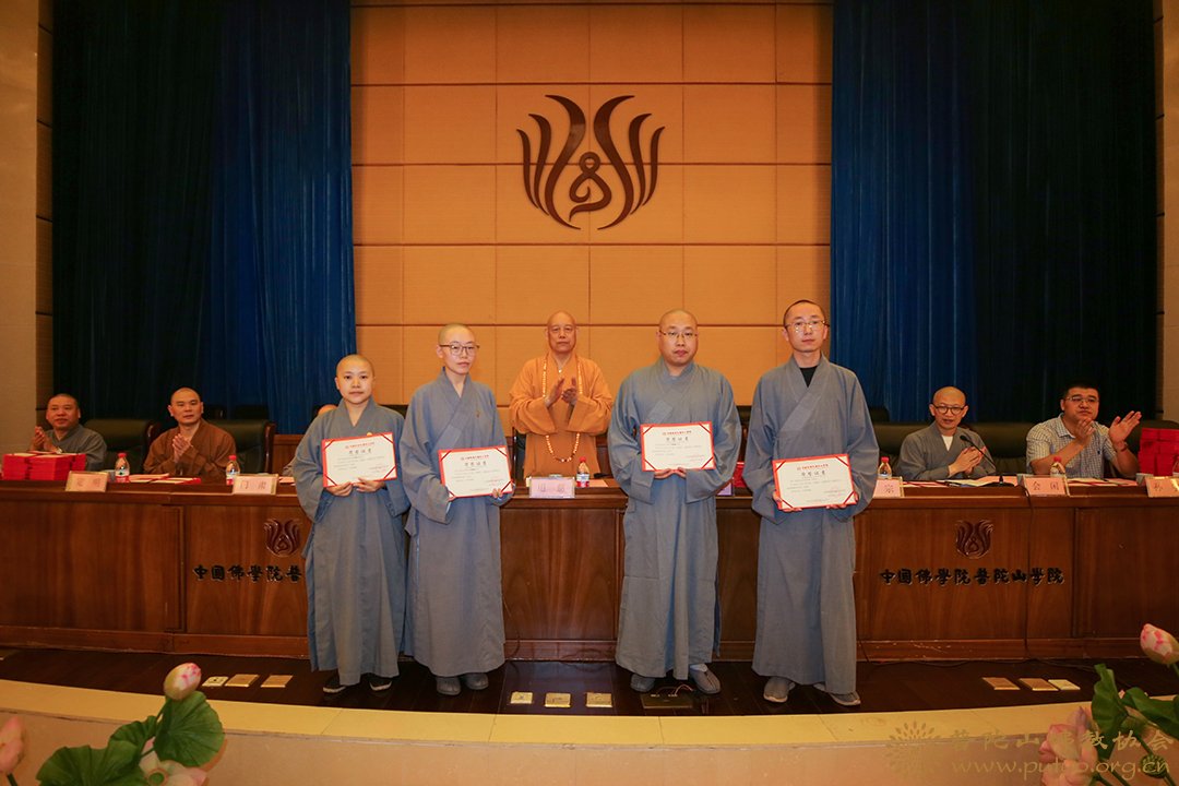 副院长界定法师首先宣读了上学期获得“妙善奖学金”等各类奖项的学生名单。随后,主席台上各位领导嘉宾分别为各项奖项获得者颁发了荣誉证书。之后,第二届居士教育福慧班和精进班学员分别给学院“妙善奖学金”项目捐赠善款。