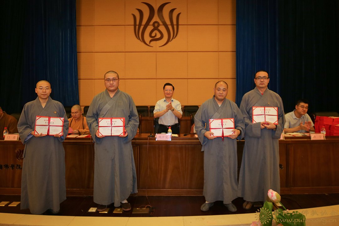 信光法师、智宗法师、门肃法师、定明法师为修持奖获得者颁奖