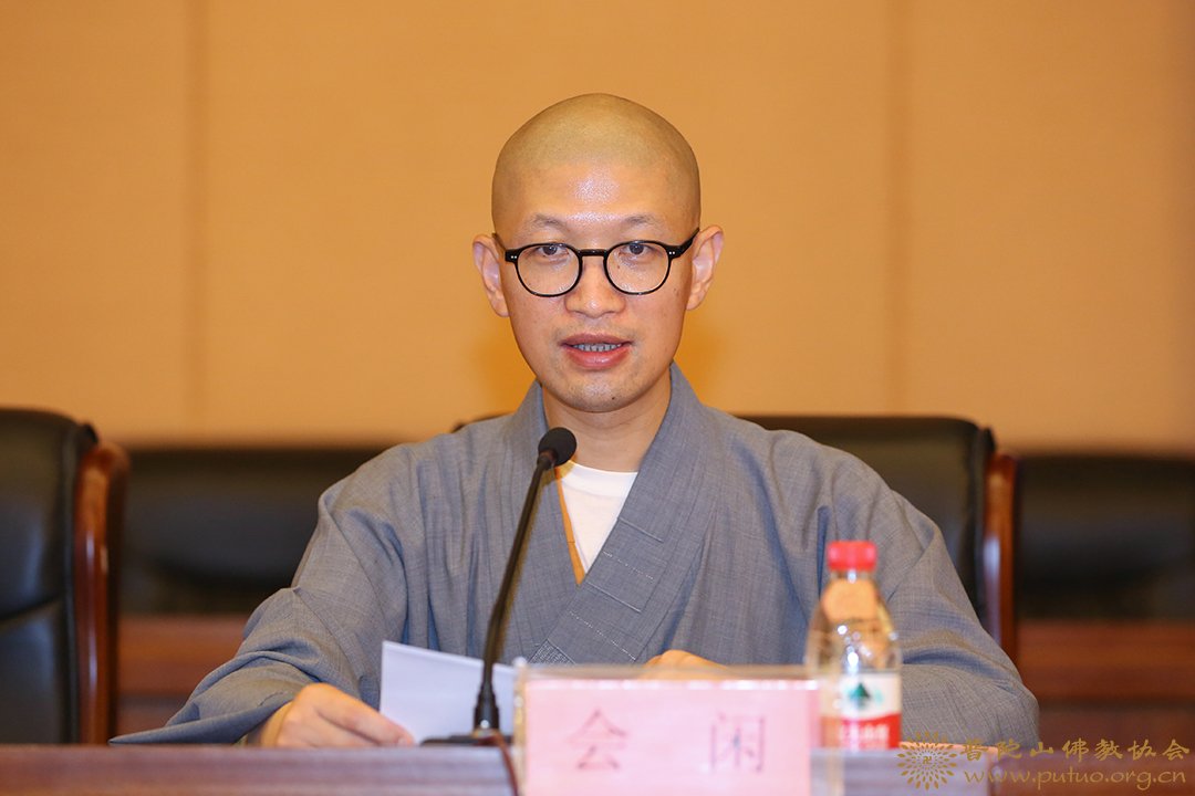 院长道慈大和尚在开学典礼上作了慈悲开示。大和尚对于新生们的到来表达了祝贺,并提前向学院全体教职员工致以教师节的问候。大和尚首先跟大家介绍了普陀山佛协的“三三制”管理理念,同时详细介绍了今年普陀山佛协新确立的“三四五”发展目标,即要确立“管理要有新境界、弘法要有新空间、道场要有新天地”三个长远目标,建立“观音信仰、弘法、僧才培养、观音文化研究与传播”四个文化中心,努力推动“名山、名僧、名寺、名校、名园”五名建设。大和尚提出,普陀山不断发展的佛教事业对全山僧众的整体素养提出了更高的要求。随后,给大家提出两点要求:首先,要坚定不移的坚持走佛教中国化方向的道路。大和尚指出,佛教中国化是佛教思想教义与中华思想文化互为补益、和合共生的过程。在当今世界多元文化的背景下,更应该以长远的目光,广泛吸纳古今中外各种优秀文明成果,使得佛教的发展与社会主义相适应。要将佛教文化与社会主义核心价值观结合起来,引领广大佛教徒紧密团结在以习近平总书记为核心的党中央周围,为实现中华民族的伟大复兴而努力。其次,要将自己造就成为一个合格的僧才。大和尚表示,普陀山佛教事业的发展需要大批合格的僧才,而合格的僧才应当满足太虚大师所说的“道心第一,学问第二,弘法第三,做事第四”等四个标准。勉励大众要珍惜来之不易的学习机会,时刻以四个标准严格要求自己,做到严持戒律、坚定信仰,深入经藏、树立正见、如法修行,学业精勤、发心奉献,为未来的修行及弘化打下坚实的基础。并衷心期待大家学业有成,早日成为佛教栋梁。