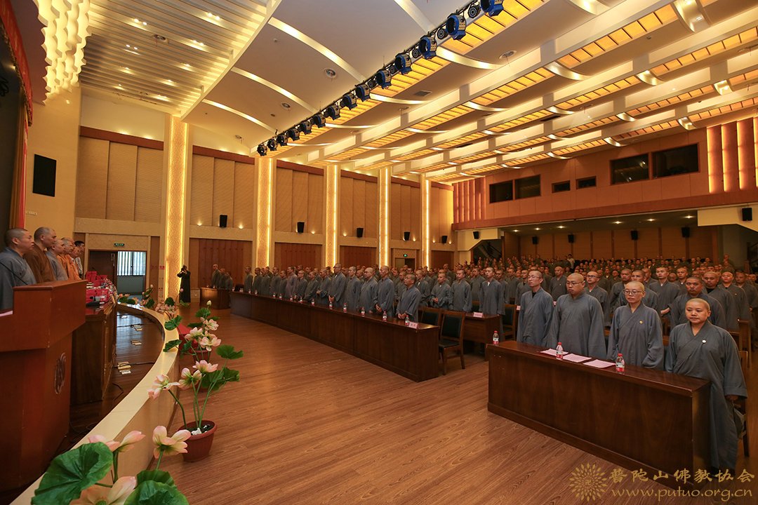 2019年9月2日上午,中国佛学院普陀山学院2019年秋季开学典礼在国际会议中心大礼堂隆重举行。中国佛教协会副会长、普陀山佛教协会会长、中国佛学院普陀山学院院长、普济禅寺方丈道慈大和尚,舟山市委统战部副部长、市民宗局局长周开龙,普陀山佛教协会副会长信光法师,普陀山佛教协会副会长智宗法师,普陀山佛教协会副会长兼秘书长门肃法师,普陀山佛教协会副会长、学院常务副院长会闲法师,普陀山佛教协会副会长定明法师,舟山市委统战部民宗一处副处长孙宇,学院副院长兼总务长界定法师,学院教务长能进法师等在主席台就座。典礼由会闲法师主持,学院全体师生共计300余人参加了开学典礼。