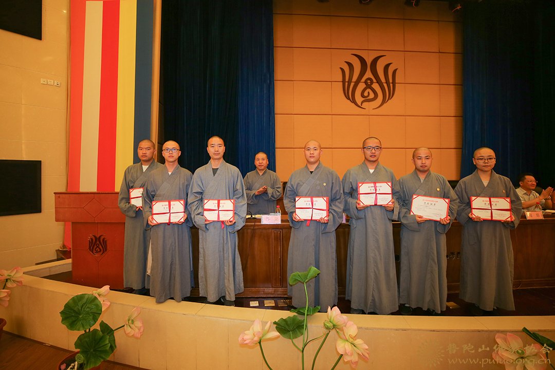 界定法师宣读妙善奖学金、全勤奖、修持奖、班委发心奖等获奖者名单