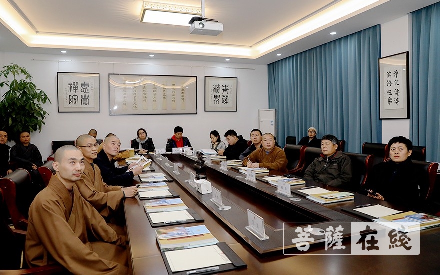 参观结束后,宾主双方在会议室进行茶话座谈。印宣法师通过具有代表性的文创产品、文案、视频进行介绍。印宣法师提到,法华寺将在印可法师带领下,进一步完善丛林格局,不断增强现代化功能建设。