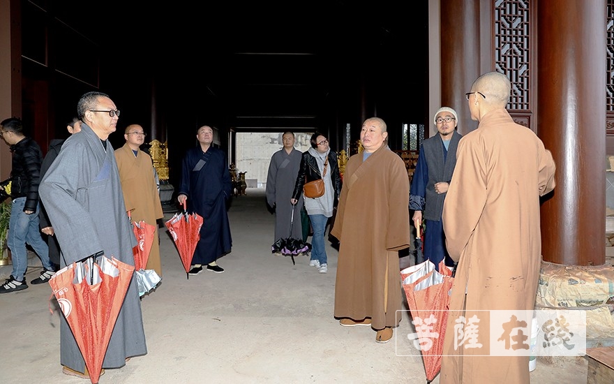 考察结束,玉平法师一行在慈满法师的陪同下参观了正在建设中的真身殿。