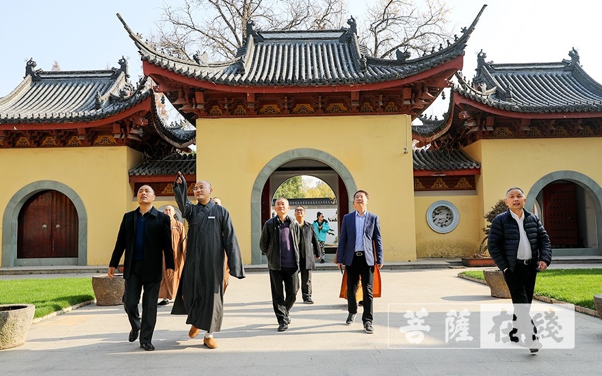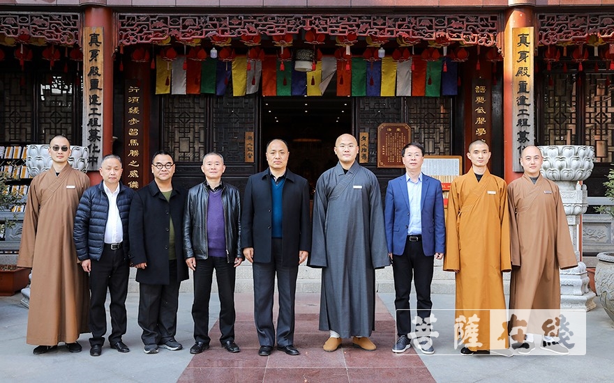 菩萨在线浙江讯 12月13日,浙江省民宗委副主任钟新章,浙江省民宗委一处处长楼剑涛一行在湖州市委统战部副部长、市民宗局局长鲍鸿,湖州市委统战部一级调研员沈火江,湖州市民宗局宗教处处长沈林华的陪同下赴湖州法华寺考察指导。印可法师率众热情接待。