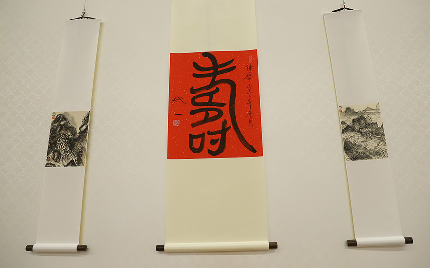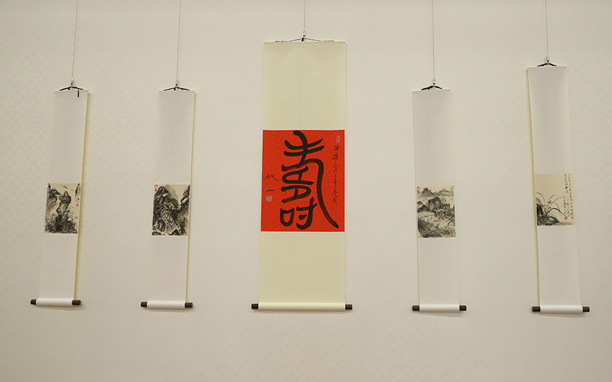 纯一大和尚表示,此次呈现给大家的作品,是一年来于佛事教务之余的闲暇之作,以四君子之兰花为基调,寄情山水田园,彰显禅悦自在,品鉴清逸高洁,展示人文情怀。此次个展有缘于此时此地开幕,而且非常有幸成为开馆后的首个国画个展,感谢永寿大和尚之盛邀成就,因缘不可思议,本人期待籍此胜缘,回向峨眉山。并借此机会对峨眉山普贤文化中心落成开馆深表祝福。同时,70幅兰花写意国画的创作,也表达了自己对新中国成立七十周年的美好祝愿。除绘画作品之外,本人还为个展创作了九幅寿字作品,祝永寿大和尚健康长寿。