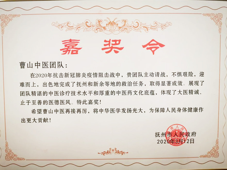 难行能行 曹山中医团队荣获抚州市政府嘉奖令