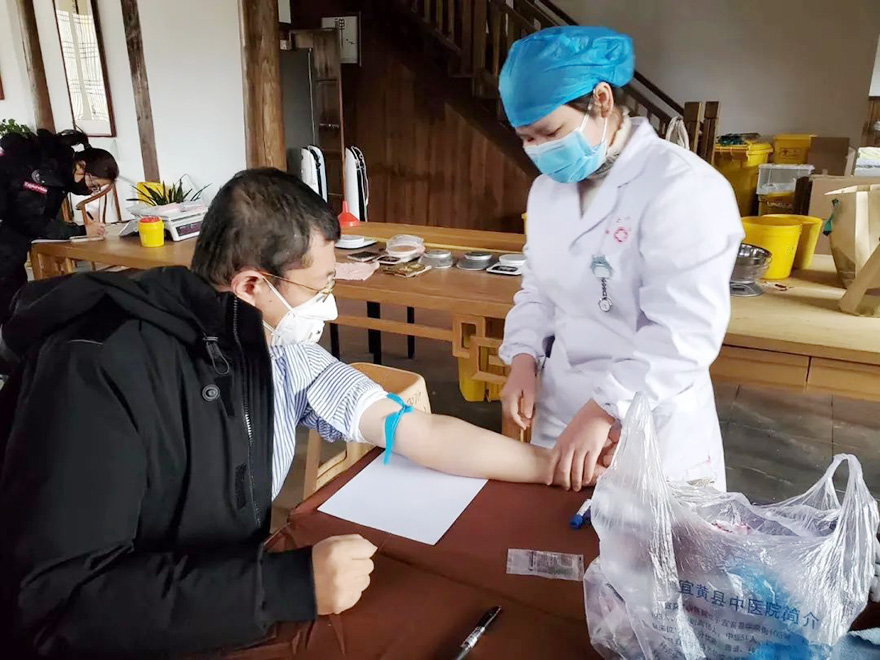 从1月24日向国务院信息平台提交中医方案到坐镇曹山亲自指挥,雷鸣教授永远是默默在后面的人,他亲自做健康对照组服药(图为抽血对照)以确保用药安全性,古有神农尝百草,他做为一名科学家践行着中华文化自信。