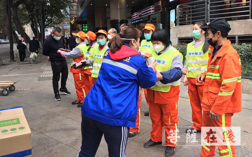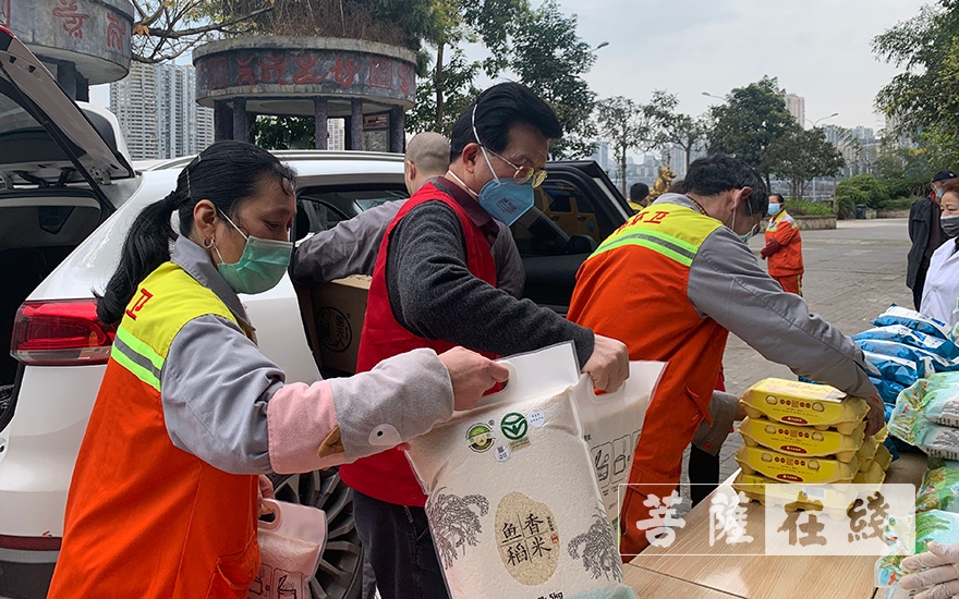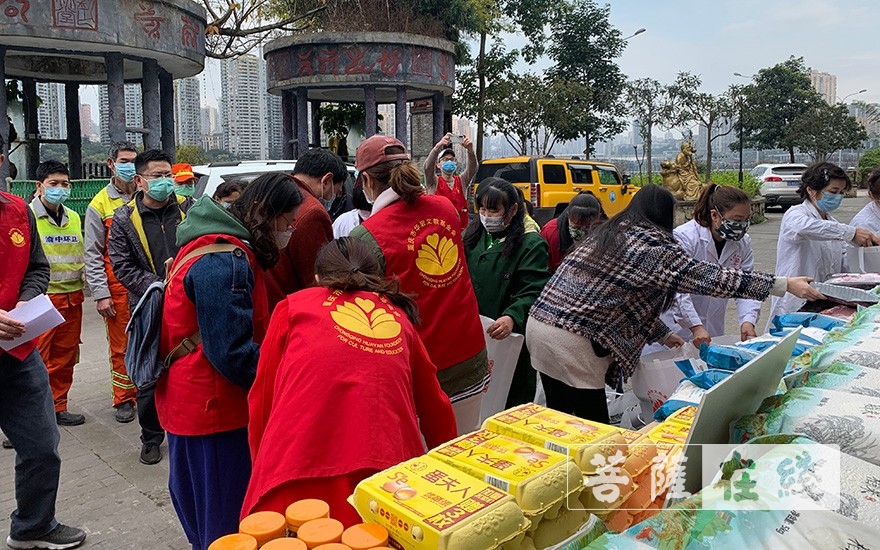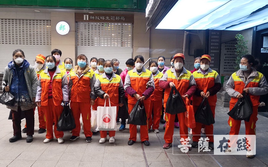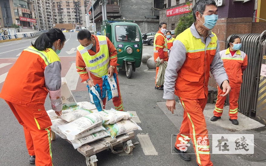 菩萨在线重庆讯 3月9日,重庆市华岩文教基金会联合重庆市农业融资担保集团有限公司在李子坝重庆中医少林堂看望并慰问了265位环卫工人和部分困难群众,并为他们送去鸡蛋、优质大米、肉和菊花茶。感谢他们为建设美丽家园和抗击疫情所作出的贡献,提醒大家在做好环卫工作的同时要注意自身防护。