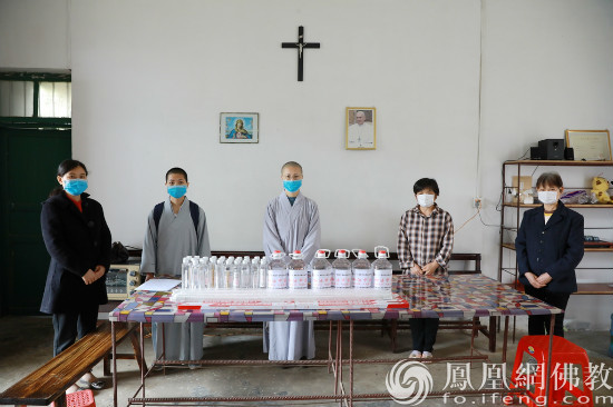 贵港市民宗委、市佛协一行给贵港市天主教界捐赠防疫物资。(图片来源:风凰网佛教 摄影:张满常)