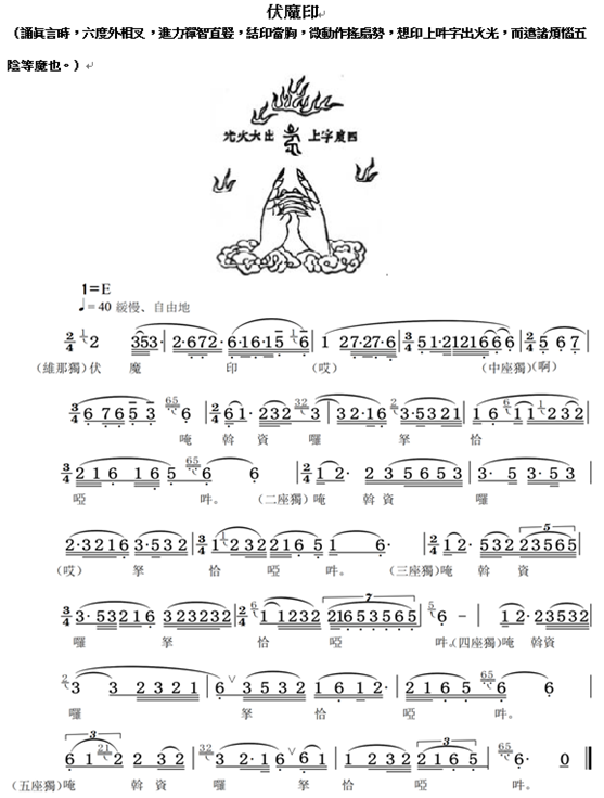 《中国汉传佛教“瑜伽焰口”法会唱本》中的“伏魔印”乐谱