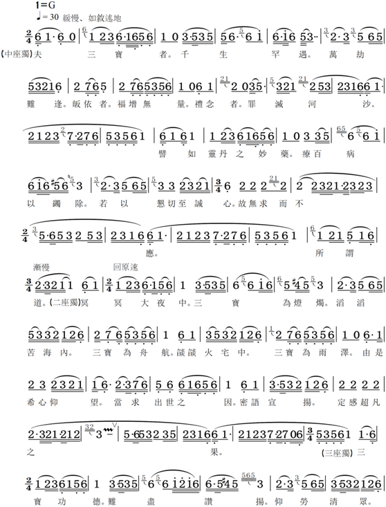 《中国汉传佛教“瑜伽焰口”法会唱本》中的“三宝文”乐谱