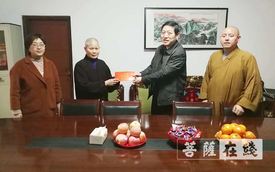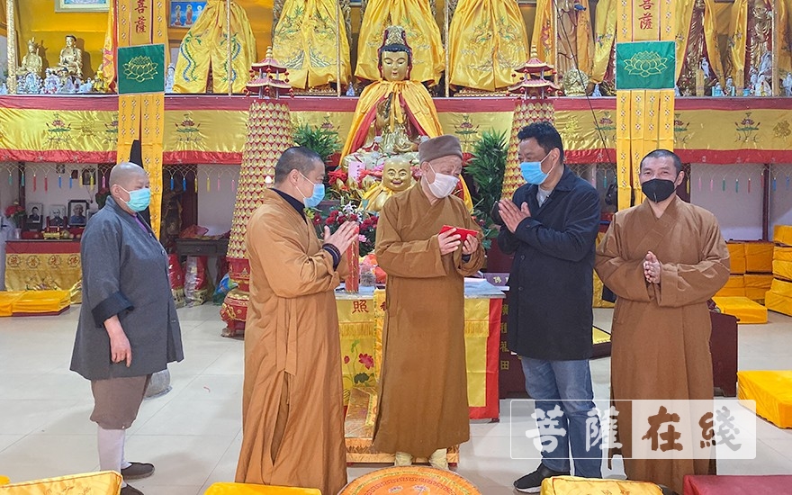 受市佛协副会长圣权法师委托,心广法师前往松隐寺慰问