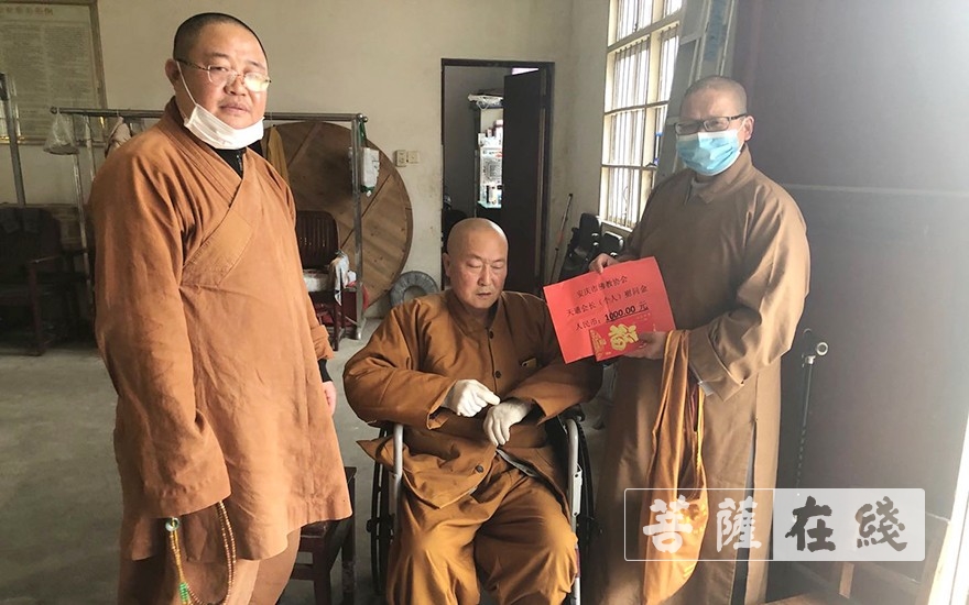 安庆市佛协拿出2万元,分配至全市9县市区20多个困难寺院。3月18日,张时民率天通法师、心广法师、西来法师等,前往怀宁、宜秀区上门看望困难寺院法师,送去慰问款。