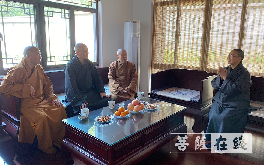 慈道法师对江苏省佛协领导的关怀表示衷心的感谢,并将寺院拆迁重新过程向心澄会长一行进行了汇报。