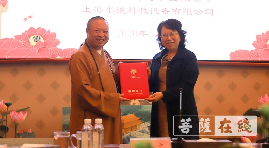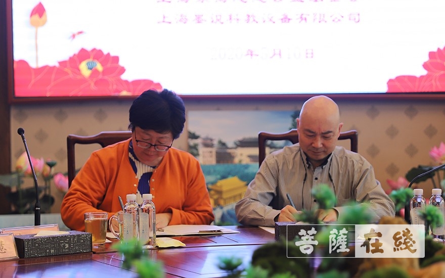 东海慈慧公益基金会与上海墨说科教设备有限公司签约(图片来源:菩萨在线 摄影:贺雪垠)