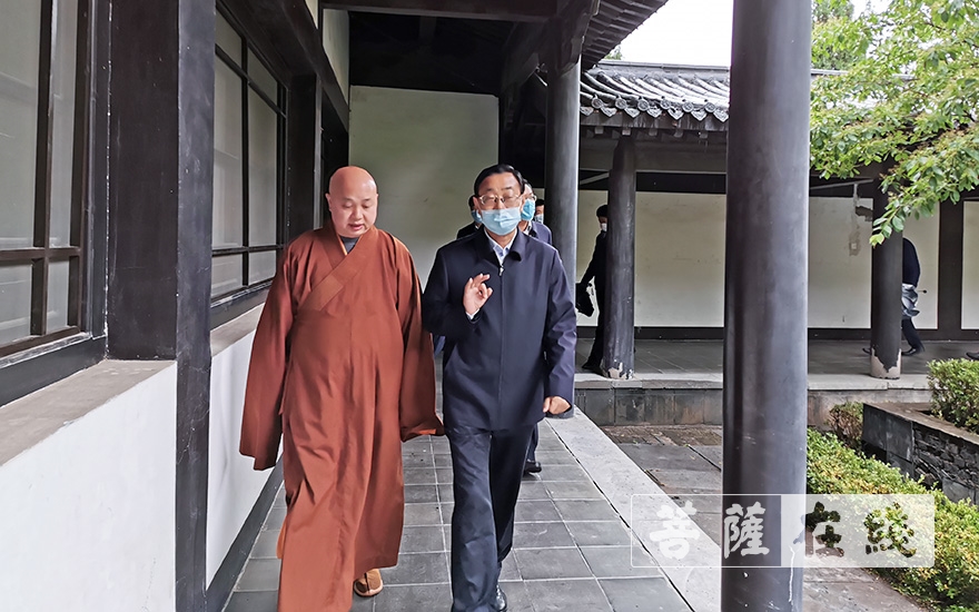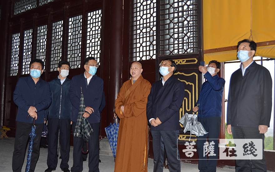 菩萨在线山东讯 5月11日上午,潍坊市政协副主席赵崇发一行,在青州市政协主席刘永福、统战部部长魏林卿的陪同下,到青州广福寺调研宗教工作情况。