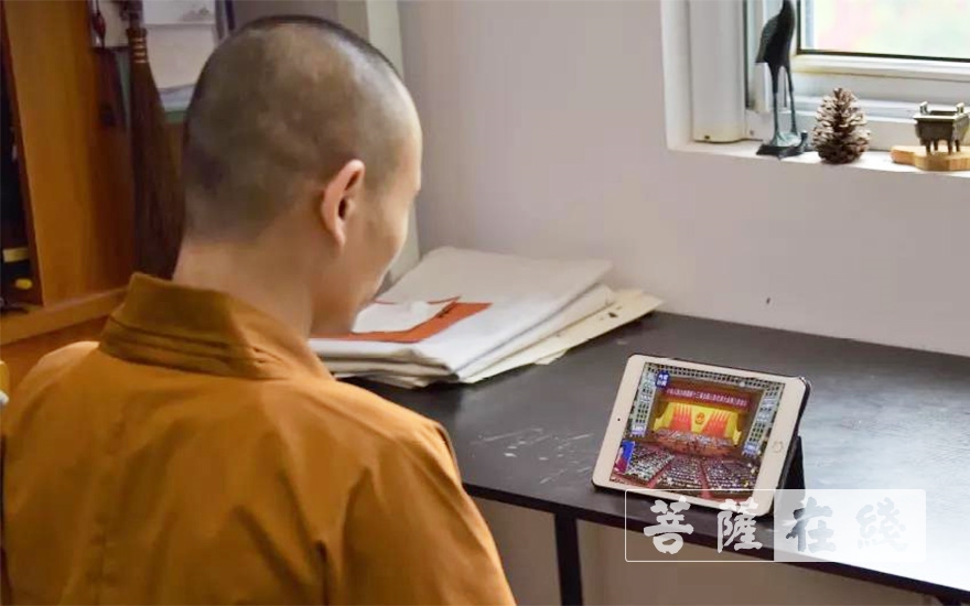 浙江佛学院组织全体在校师生员工收看十三届全国人大三次会议闭幕会特别报道